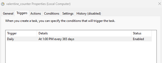 I have the trigger set up every year for valentine's day, the app pops up and asks me if I have a date for the day every year.